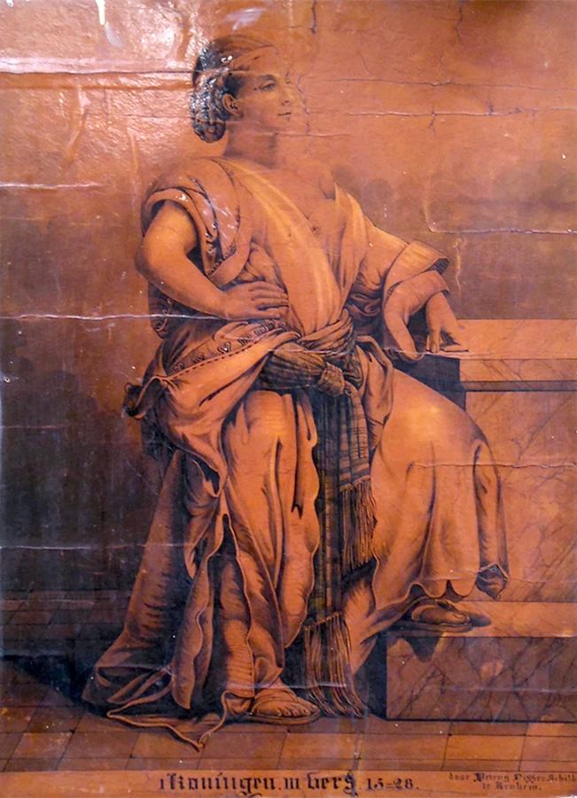 Visser heeft het werk nauwkeurig geschilderd naar voorbeeld van een schilderij van Frederic Henri Schopin (1804-1880). Onder het werk staat: 'door Petrus Visser Schilder te Arnhem'.
