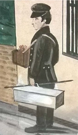 Van Peter Visser weten wij dat hij tussen 1852 en 1855 in onze streek schilderde. Het schilderij van Gorssel hebben wij gedateerd op 1854 op basis het feit dat hij dat jaar ook in Voorst heeft geschilderd en op basis van het eerste detail wat ons opvalt in het schilderij: de palen en de draad van de Rijkstelegraaf die rechts op het schilderij zijn te zien. Die werd voor het Gorsselse deel namelijk aanbesteed op 22 juli 1853. Het was de eerste nutsvoorziening en dus een modern detail voor die tijd die Peter Visser kon schilderen, te vergelijken met een 5G mast nu. Nu ons oog hierop gericht is, gaan we het schilderij verder maar van rechts naar links bekijken.