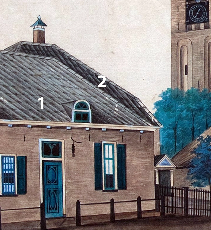Het achterliggende huis was in 1832 eigendom van winkelier Gerrit van Hoorn.